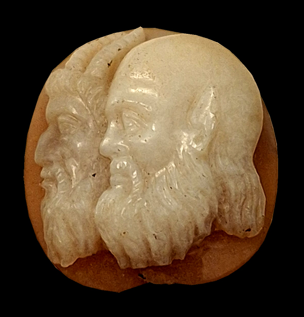 Kamee mit Motiven aus dem alten und neuen Testament. Lagenachat mit drei Lagen.